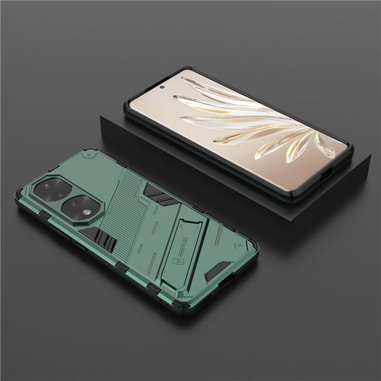 For Honor 70 Pro 5G Shock Absorption Drop-proof TPU+PC Cover Kickstand Anti-scratch Cell Phone Case - Green