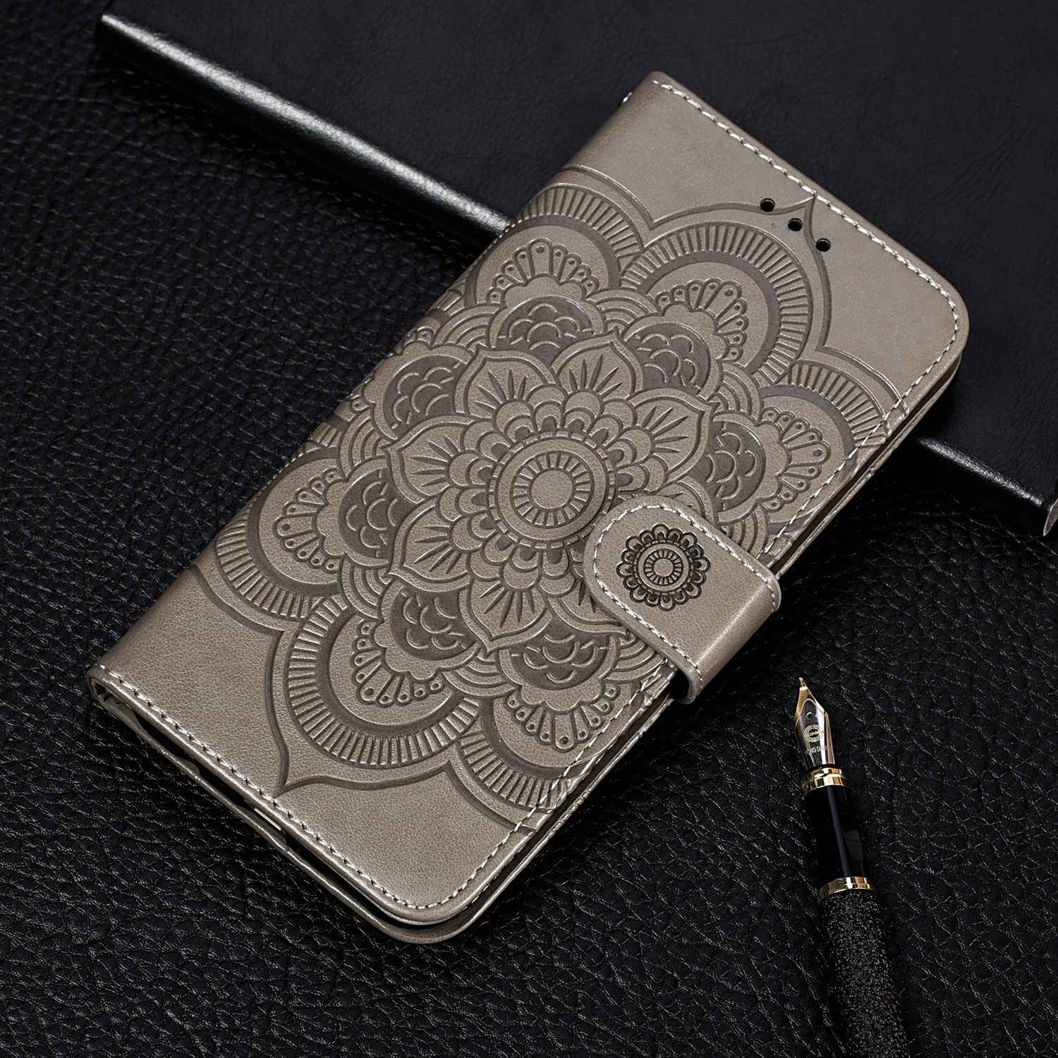 Uniqkart for Honor 80 Pro 5G PU Leather Wallet Stand Phone Cover Imprinting Mandala Flower Protective Case - Grey