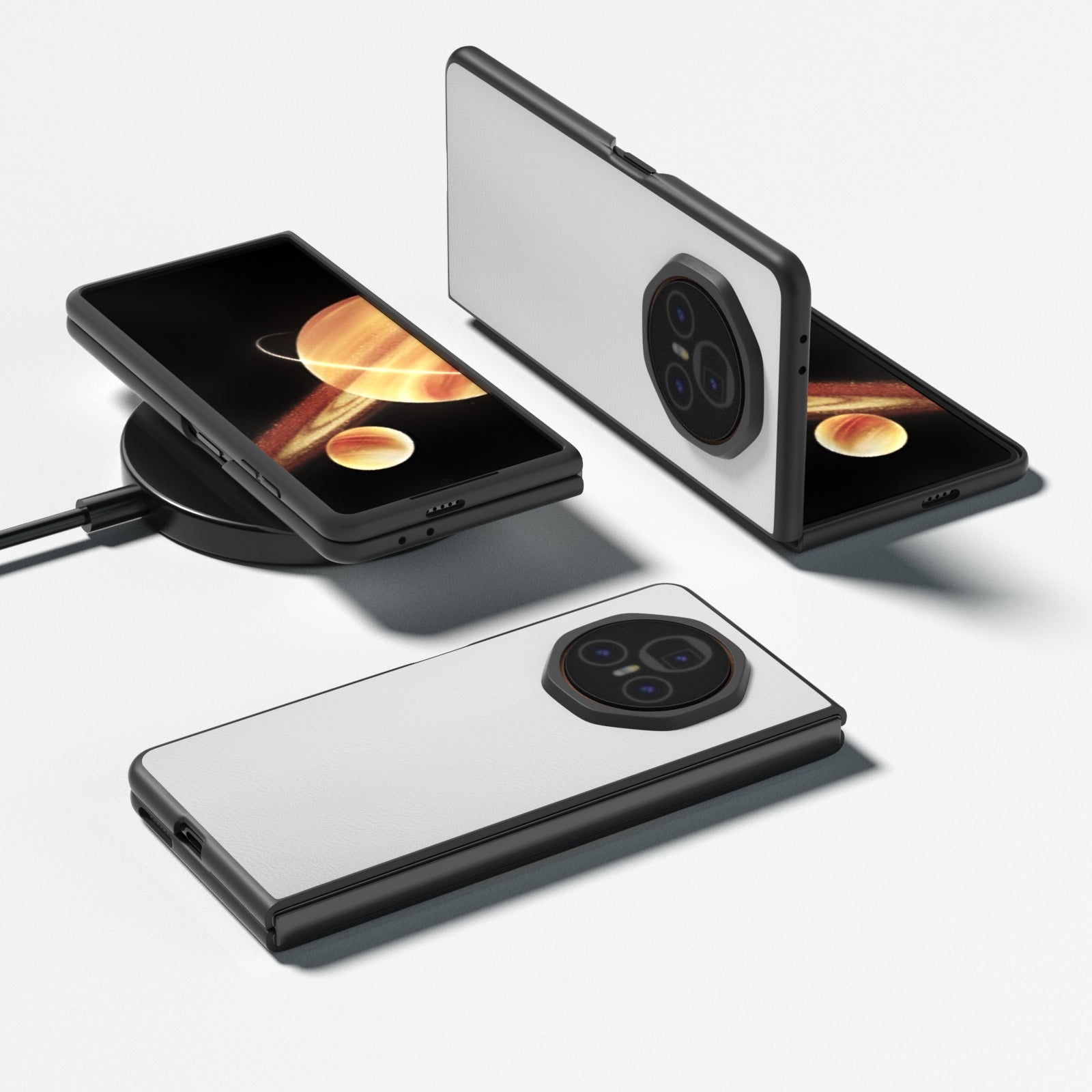 For Honor Magic V3 PU Leather Black Frame Full Coverage Phone Case(White)