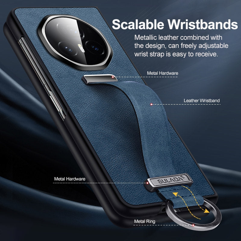 For Honor Magic V3 SULADA PC + Leather Texture Skin Feel Shockproof Phone Case(Blue)
