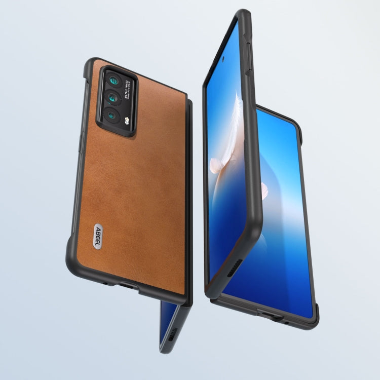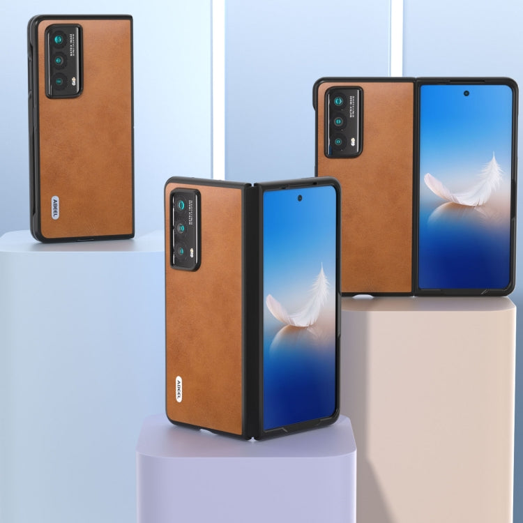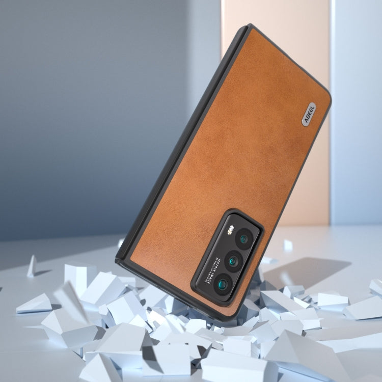 For Honor Magic Vs2 ABEEL Two-color Calf Texture PU Phone Case(Brown)