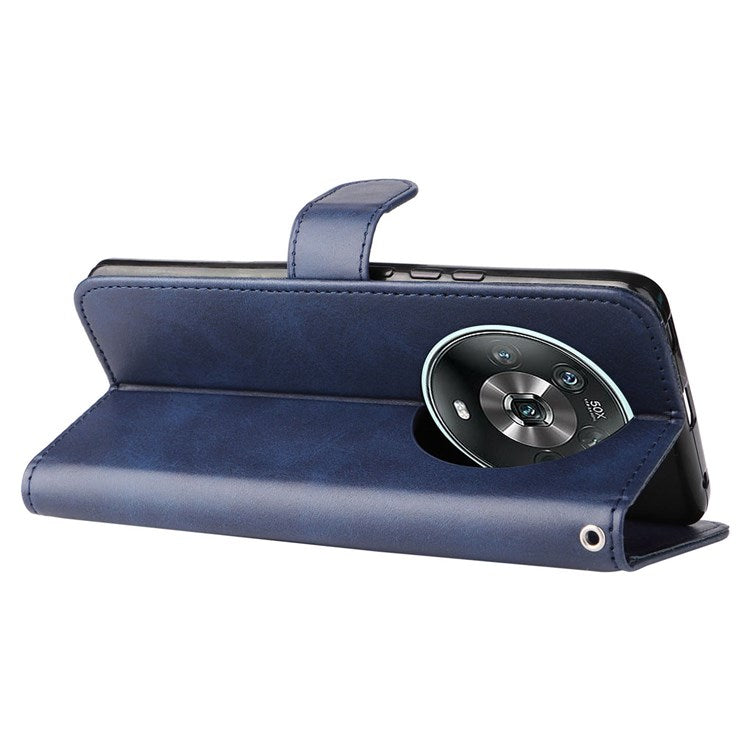 For Honor Magic4 5G/Magic4 Pro 5G Anti-fall PU Leather Wallet Folio Flip Case Zipper Pocket Stand Shockproof Protective Cover - Blue