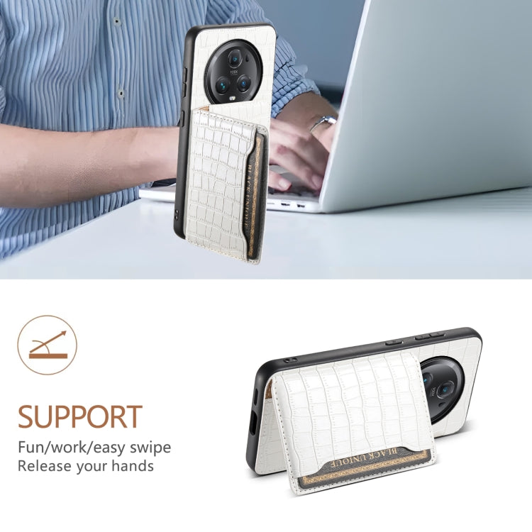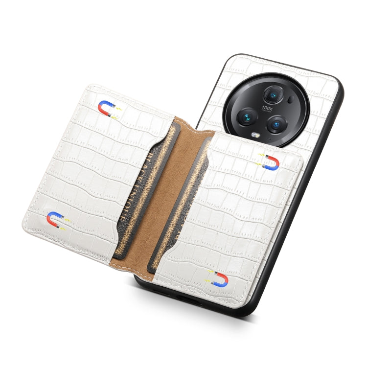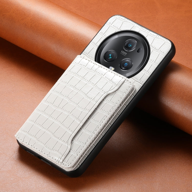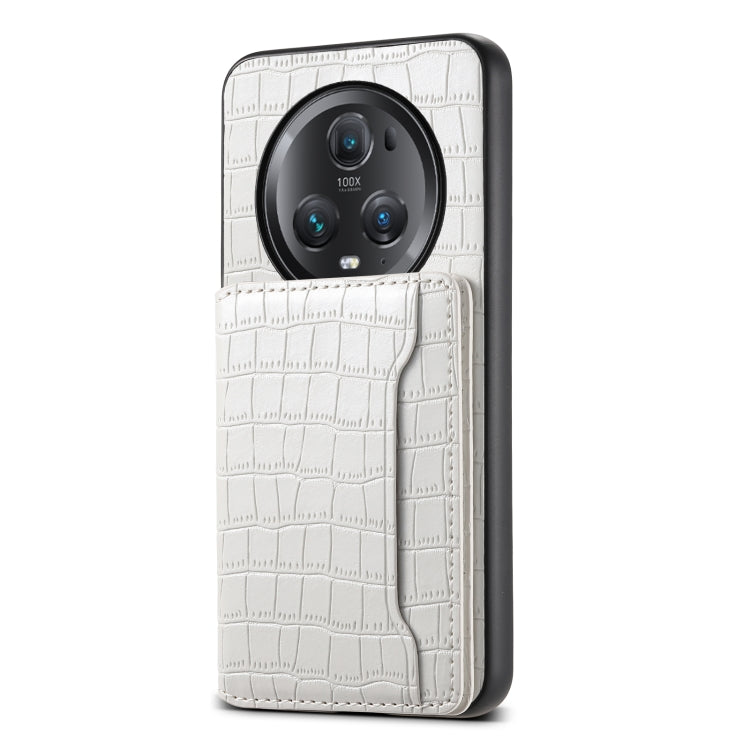 For Honor Magic5 Pro Crocodile Texture Card Bag Design Full Coverage Phone Case(White)