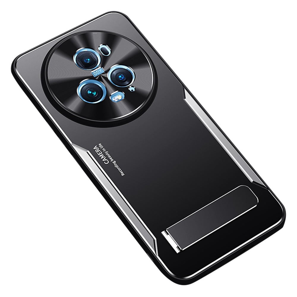 Uniqkart for Honor Magic5 Pro Shockproof Phone Cover Kickstand TPU+Aluminium Alloy Cell Phone Shell Case - Silver