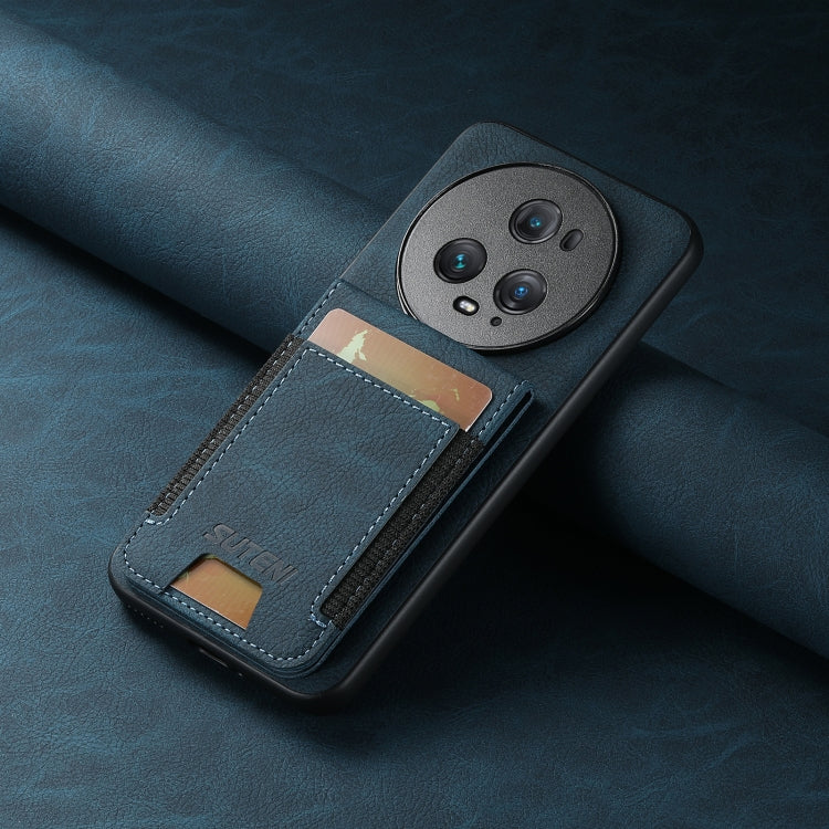 For Honor Magic5 Pro Suteni H03 Litchi Leather Card Bag Stand Back Phone Case(Blue)