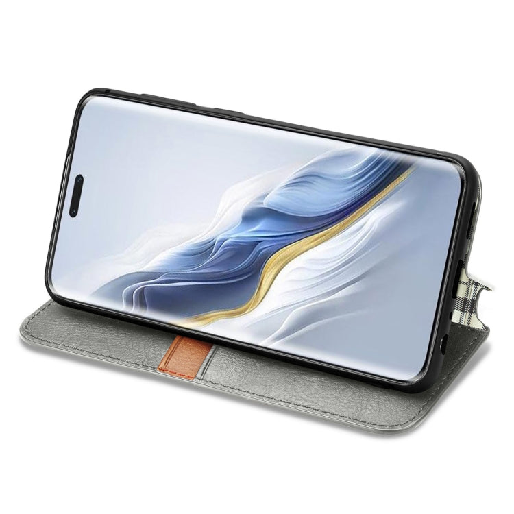 For Honor Magic6 Pro Cubic Grid Pressed Magnetic Leather Phone Case(Grey)