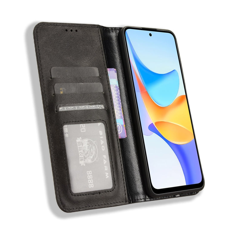 For Honor Play 50 Plus Magnetic Buckle Retro Texture Leather Phone Case(Black)