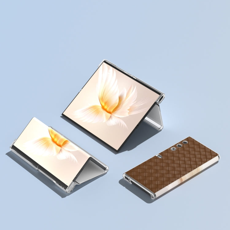 For Honor V Purse Woven Texture Transparent Frame PU Phone Case(Brown)