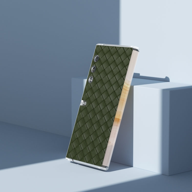 For Honor V Purse Woven Texture Transparent Frame PU Phone Case(Green)