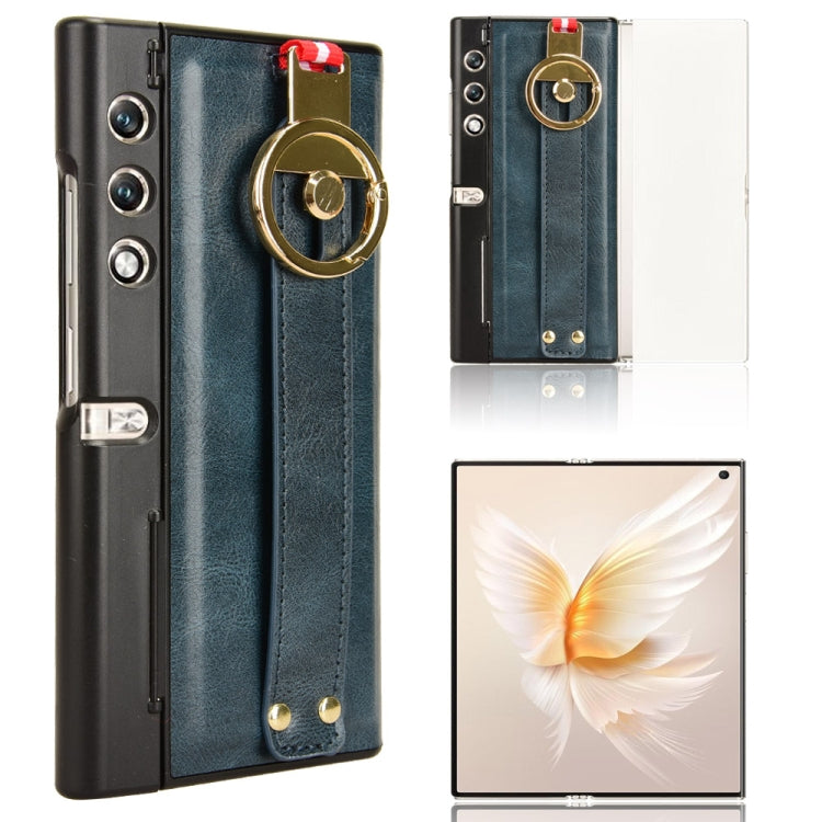 For Honor V Purse Wristband Leather Back Phone Case(Blue)