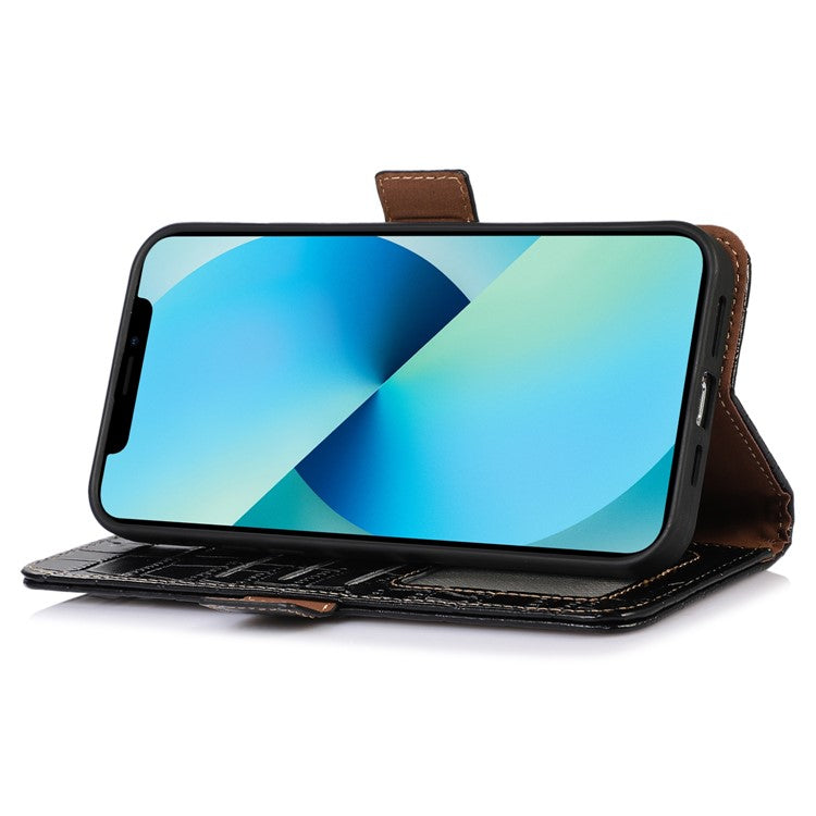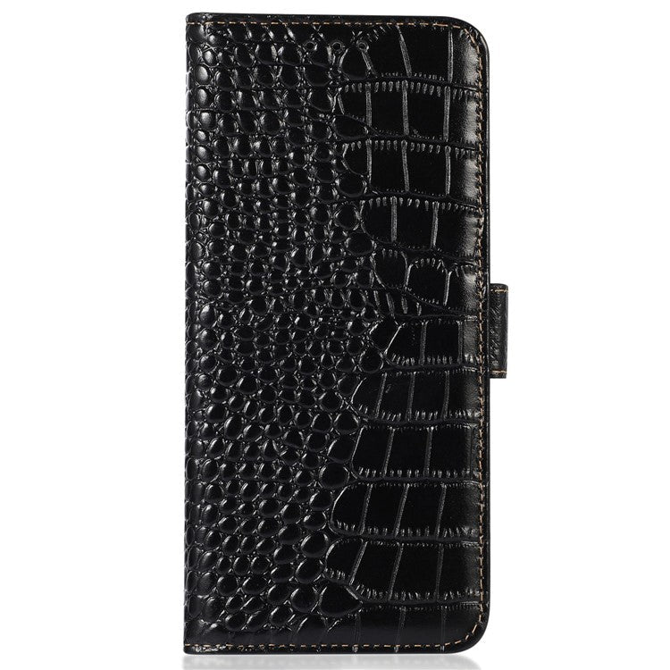 For Honor X40i 5G Anti-scratch Crocodile Texture Phone Case Genuine Cowhide Leather Wallet Stand RFID Blocking Folio Magnetic Closure Phone Cover - Black