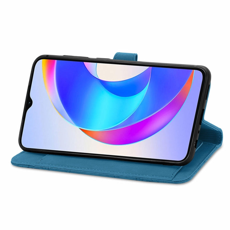 For Honor X5 Plus Embossed Flower Zipper Leather Phone Case(Blue)