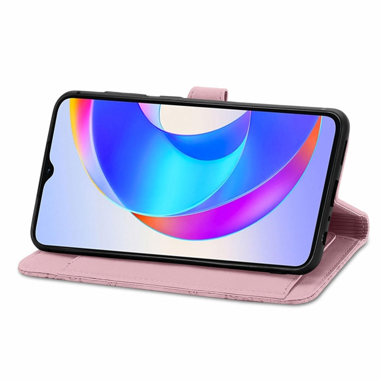 For Honor X5 Plus Embossed Flower Zipper Leather Phone Case(Pink)