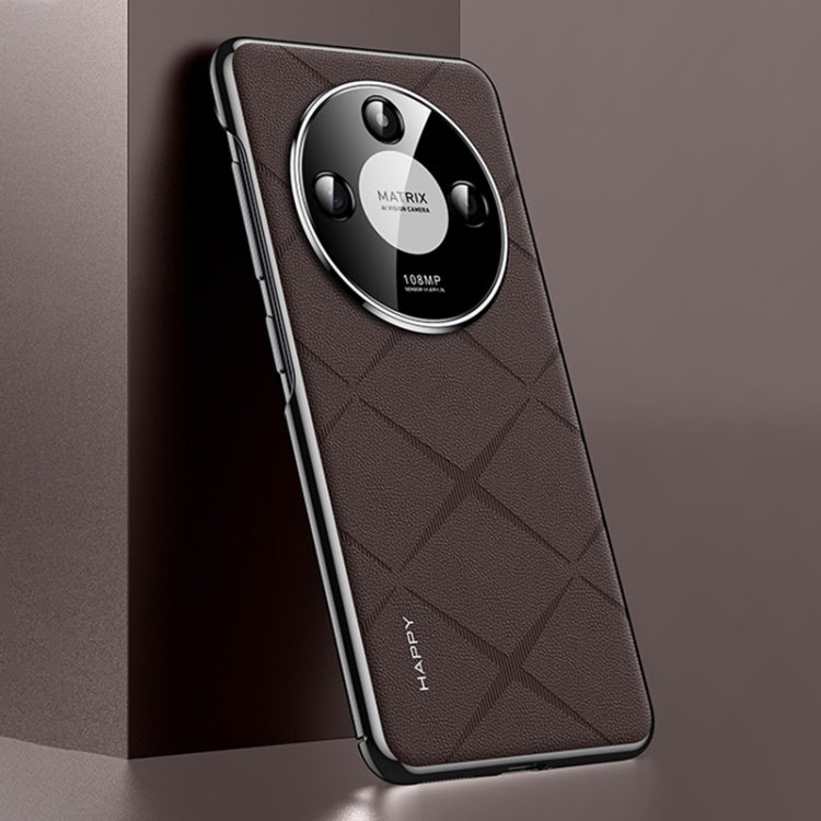 For Honor X50 Plain Leather PC Phone Case(Brown)