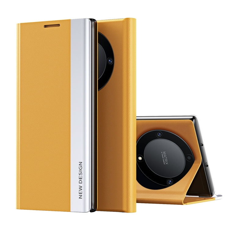 For Honor X50 Side Electroplated Adsorption Leather Phone Case(Yellow)