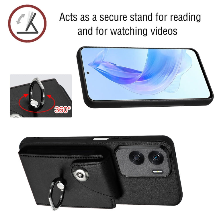 For Honor X50i / 90 Lite Organ Card Bag Ring Holder PU Phone Case(Black)
