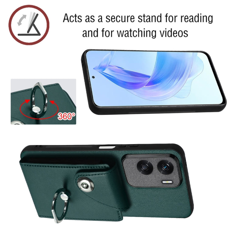 For Honor X50i / 90 Lite Organ Card Bag Ring Holder PU Phone Case(Green)