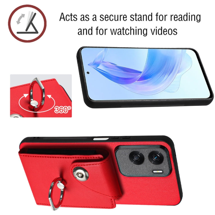For Honor X50i / 90 Lite Organ Card Bag Ring Holder PU Phone Case(Red)