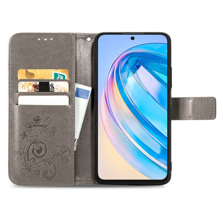 For Honor X6A Four-leaf Clasp Embossed Leather Phone Case(Gray)