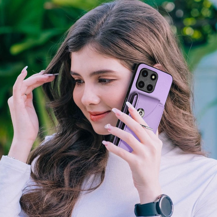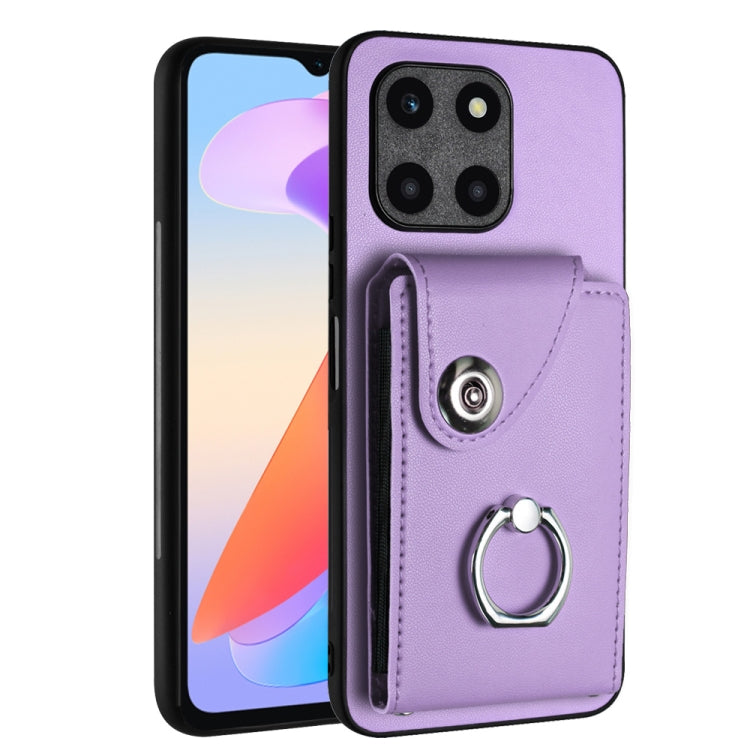 For Honor X6a Organ Card Bag Ring Holder PU Phone Case(Purple)