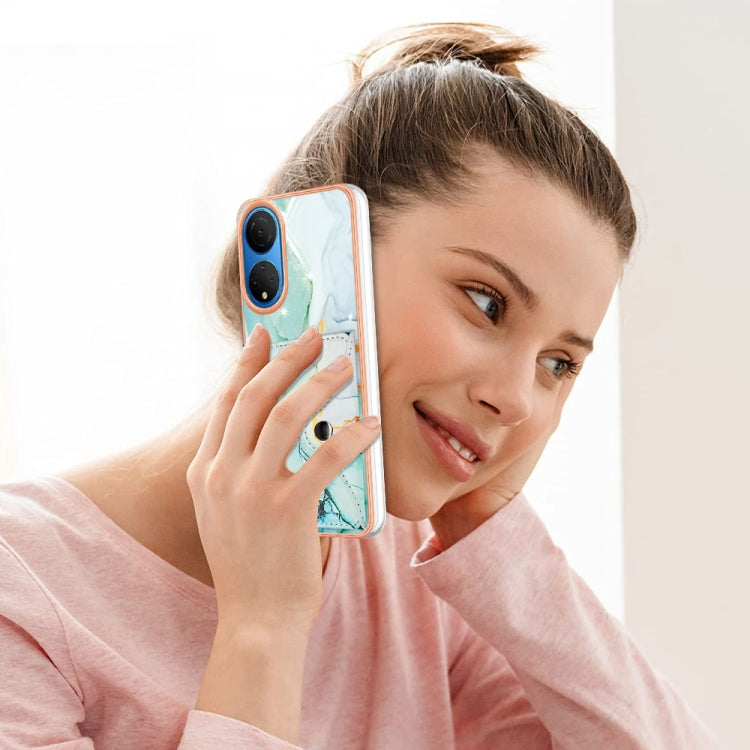 For Honor X7 Marble Pattern IMD Card Slot Phone Case(Green)