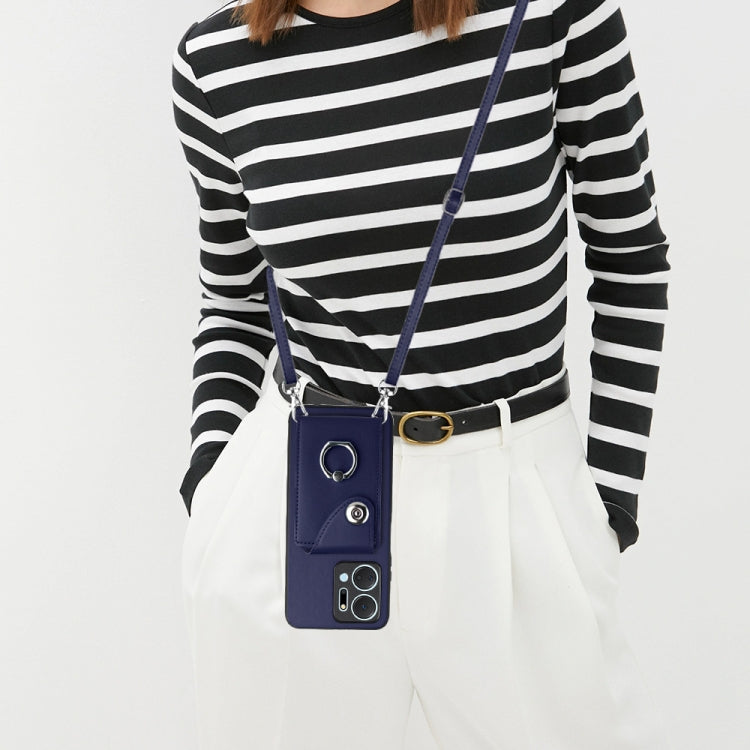 For Honor X7a / Play7T Organ Card Bag Ring Holder Phone Case with Long Lanyard(Blue)