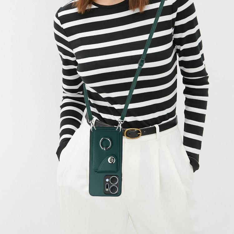 For Honor X7a / Play7T Organ Card Bag Ring Holder Phone Case with Long Lanyard(Green)