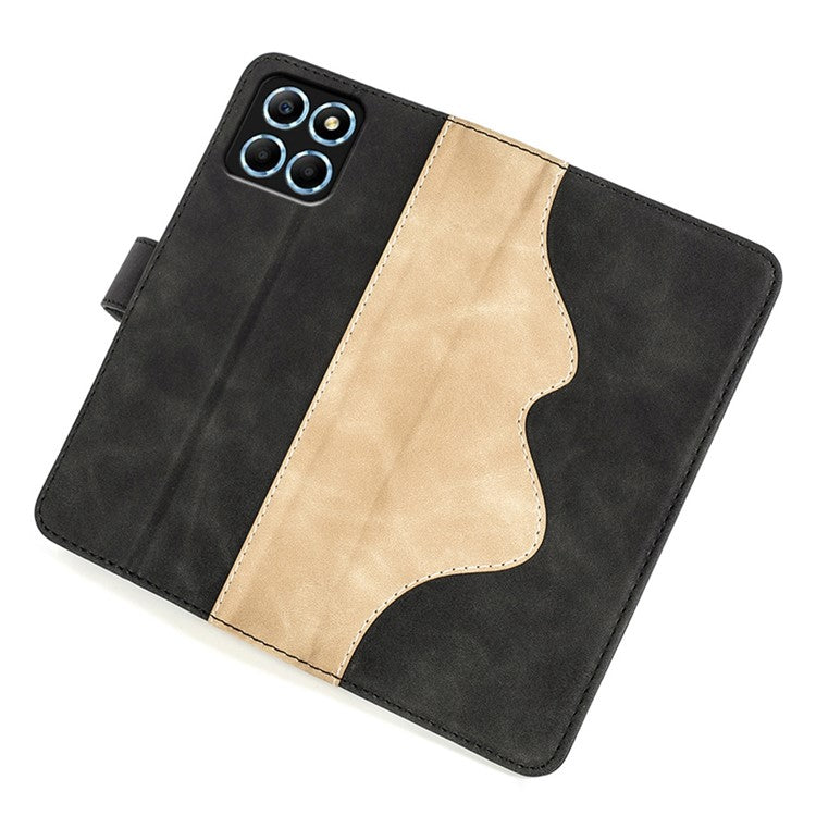 For Honor X8 5G Dual Color Splicing Magnetic Clasp Stand Wallet Phone Case PU Leather Anti-drop Cover - Black