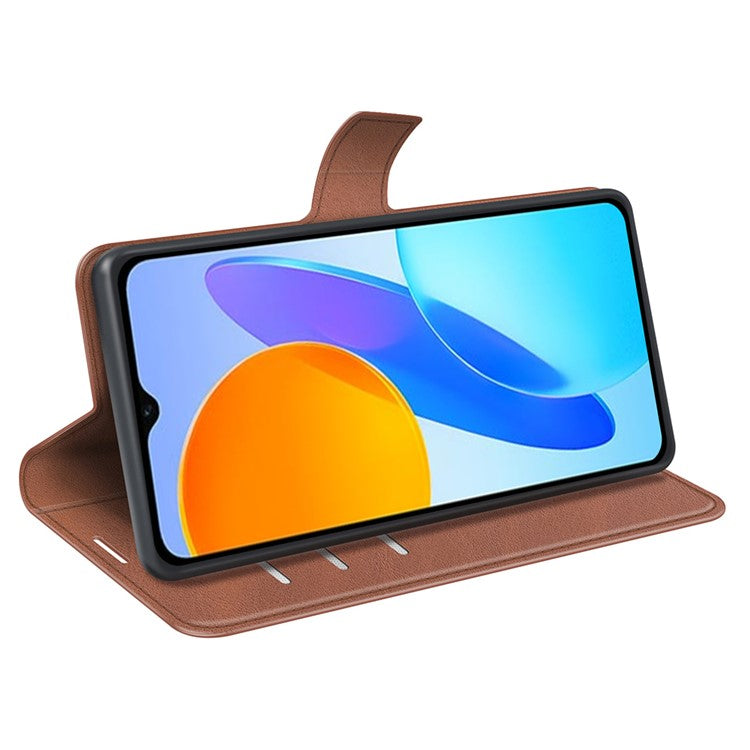 For Honor X8 5G PU Leather Calf Texture Phone Case Full Protection Stand Wallet Magnetic Clasp Cover - Light Brown