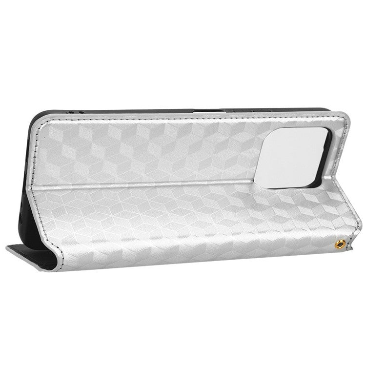 For Honor X8 5G PU Leather Flip Cover Imprinted Rhombus Pattern Magnetic Auto-absorbed Stand Wallet Phone Case - Silver