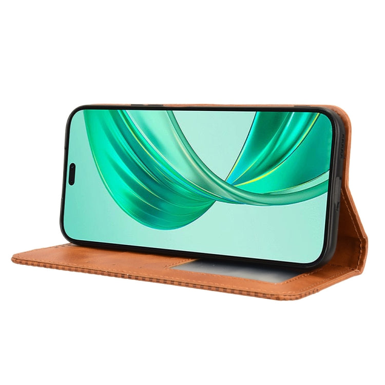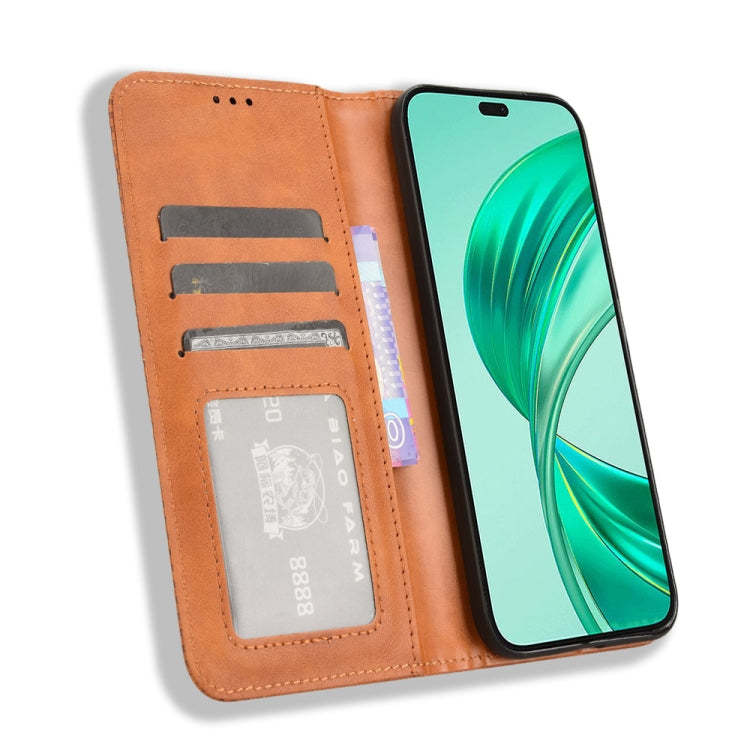 For Honor X8b 4G Magnetic Buckle Retro Texture Leather Phone Case(Brown)