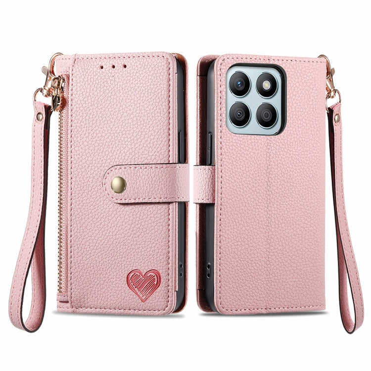 For Honor X8B Love Zipper Lanyard Leather Phone Case(Pink)