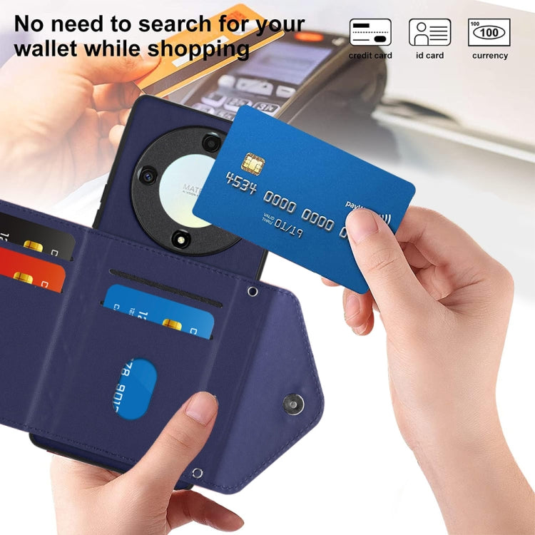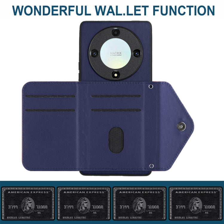 For Honor X9a / Magic5 Lite Rhombic Texture Card Bag RFID Phone Case with Long Lanyard(Dark Purple)