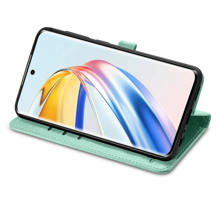 For Honor X9b Cat and Dog Embossed Leather Phone Case(Green)