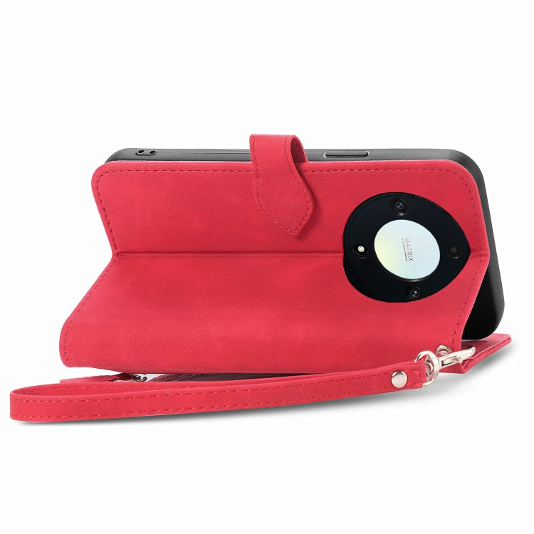 For Honor X9b Embossed Flower Zipper Leather Phone Case(Red)