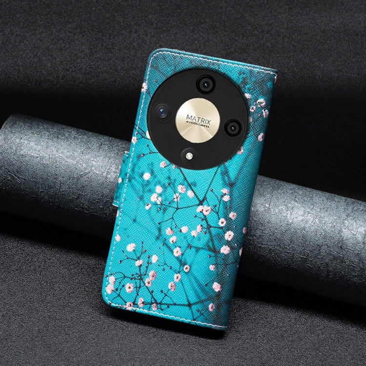 For Honor X9b/Magic6 Lite 5G Colored Drawing Pattern Leather Phone Case(Plum Blossom)