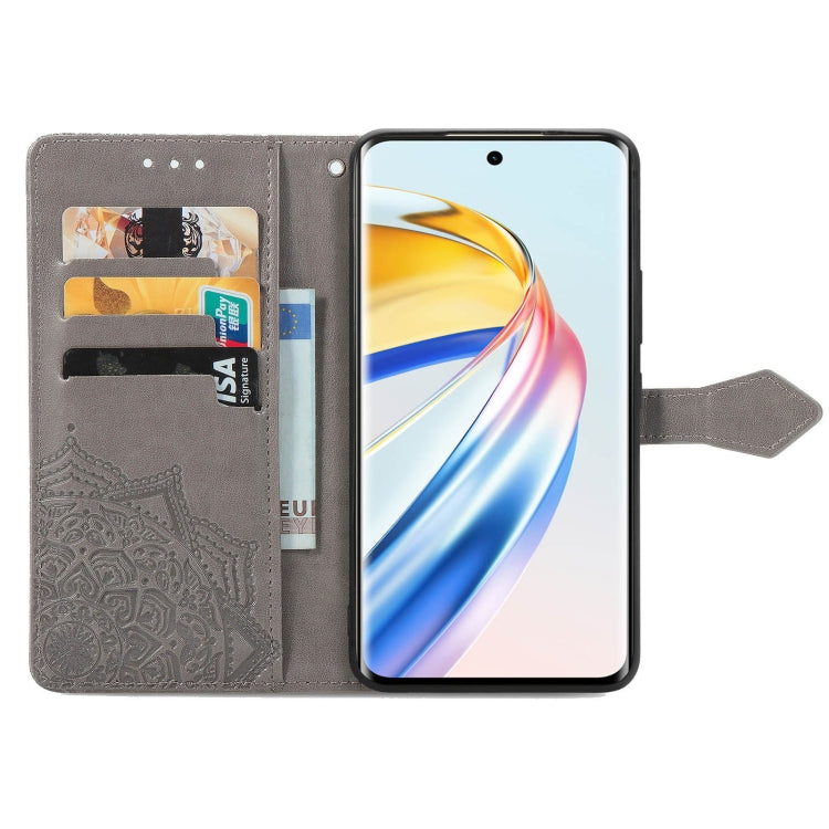 For Honor X9b Mandala Flower Embossed Leather Phone Case(Gray)