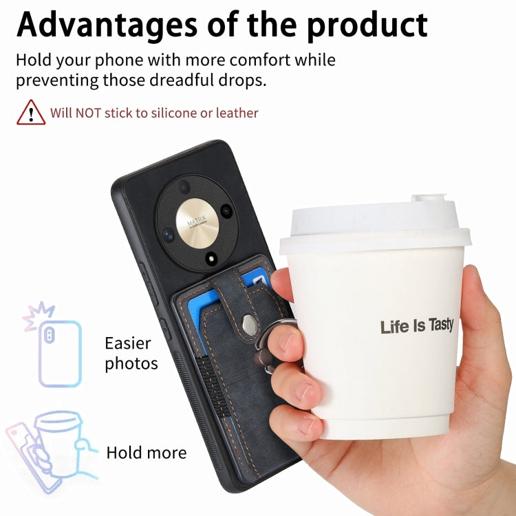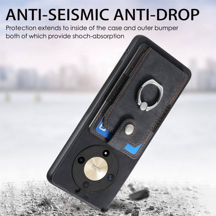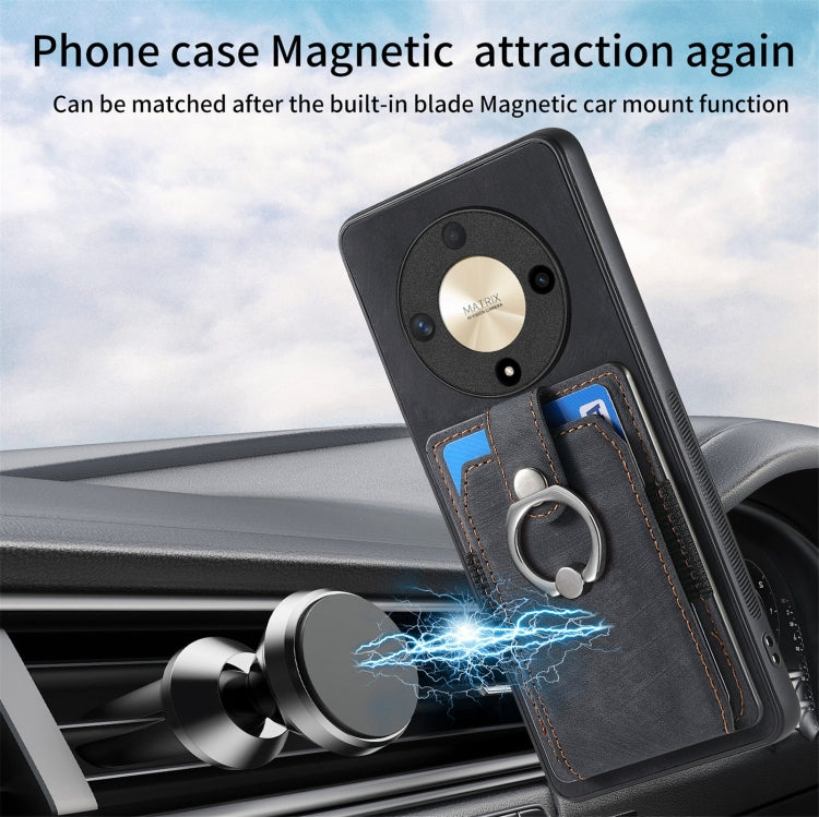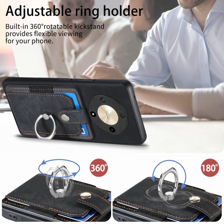 For Honor X9b Retro Skin-feel Ring Card Wallet Phone Case(Black)