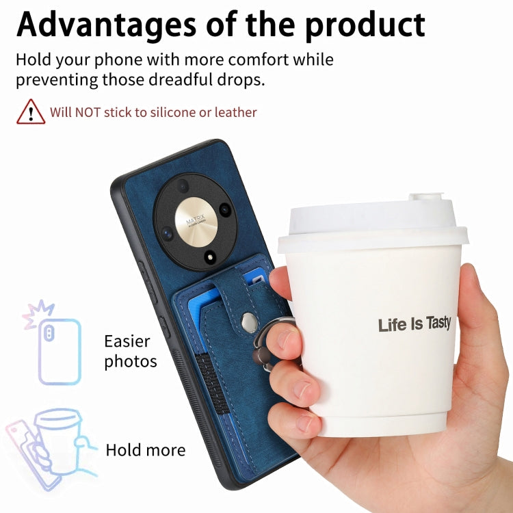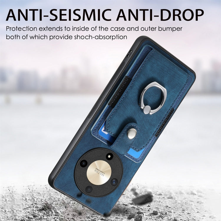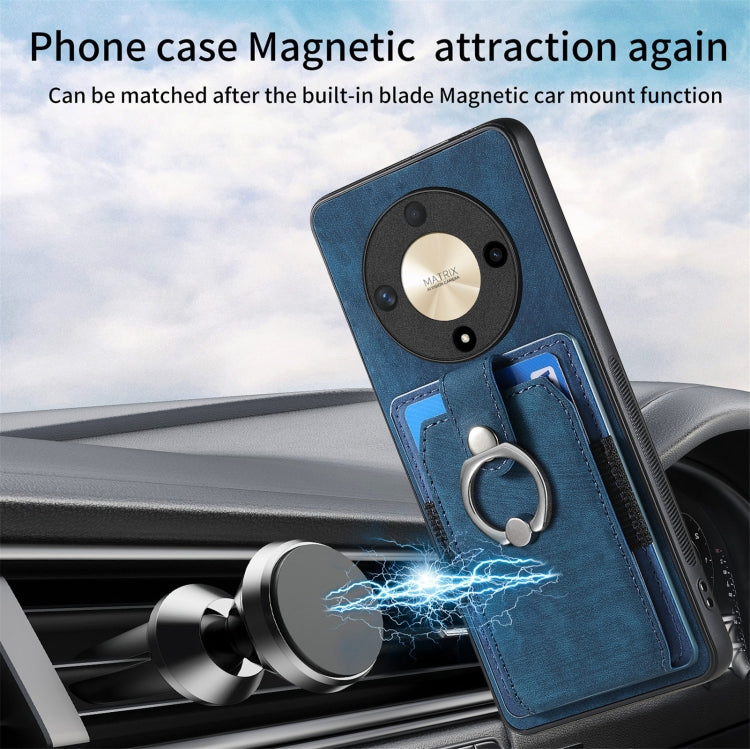 For Honor X9b Retro Skin-feel Ring Card Wallet Phone Case(Blue)