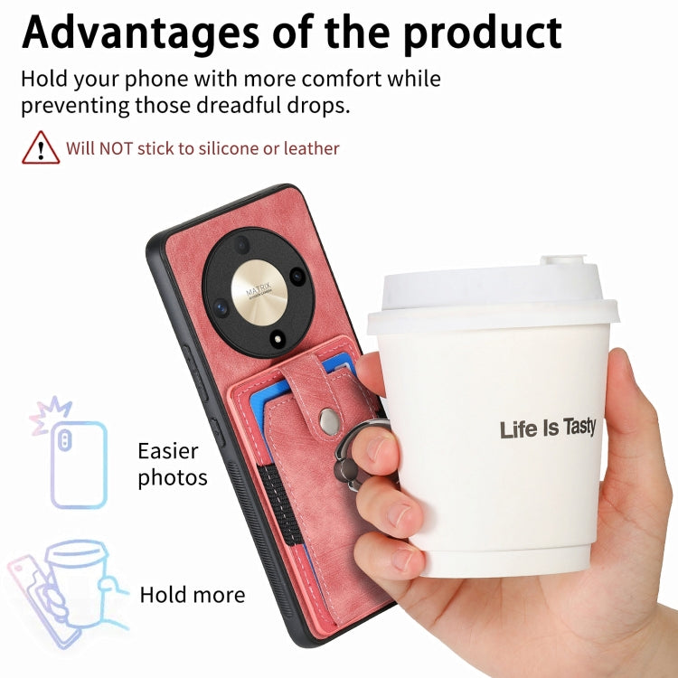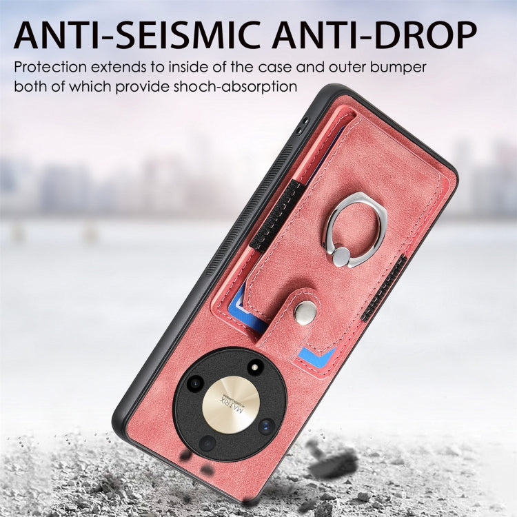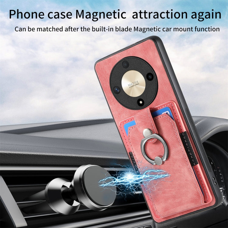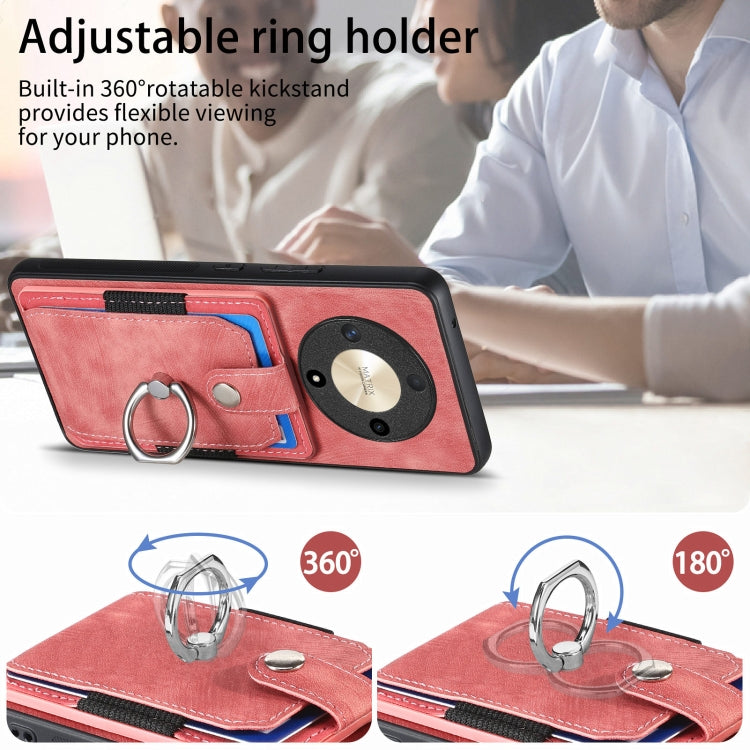 For Honor X9b Retro Skin-feel Ring Card Wallet Phone Case(Pink)