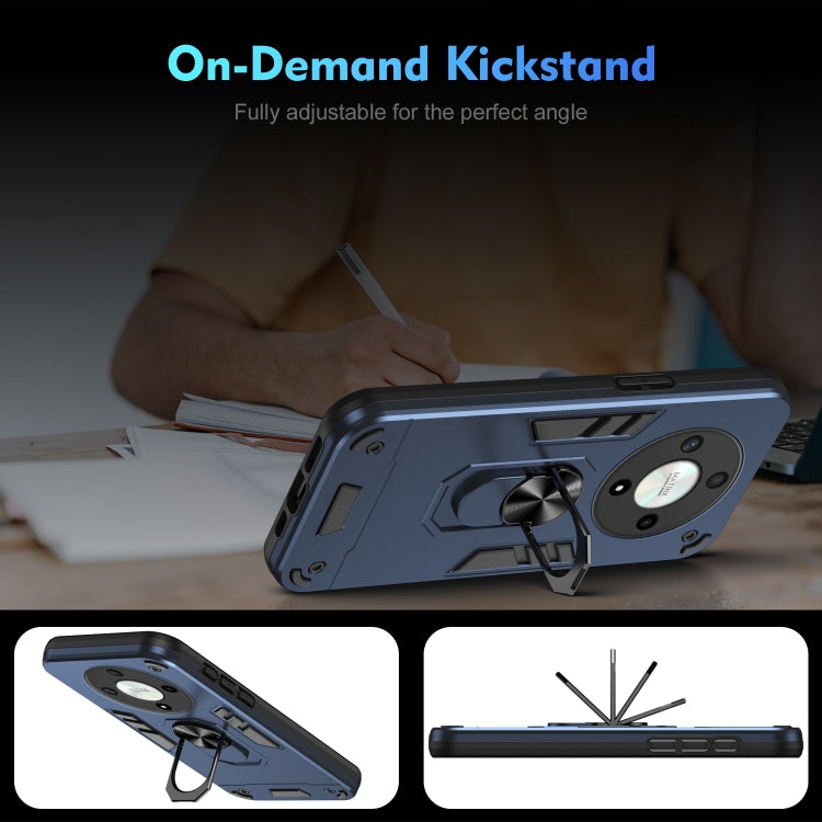For Honor X9b Shockproof Metal Ring Holder Phone Case(Blue)