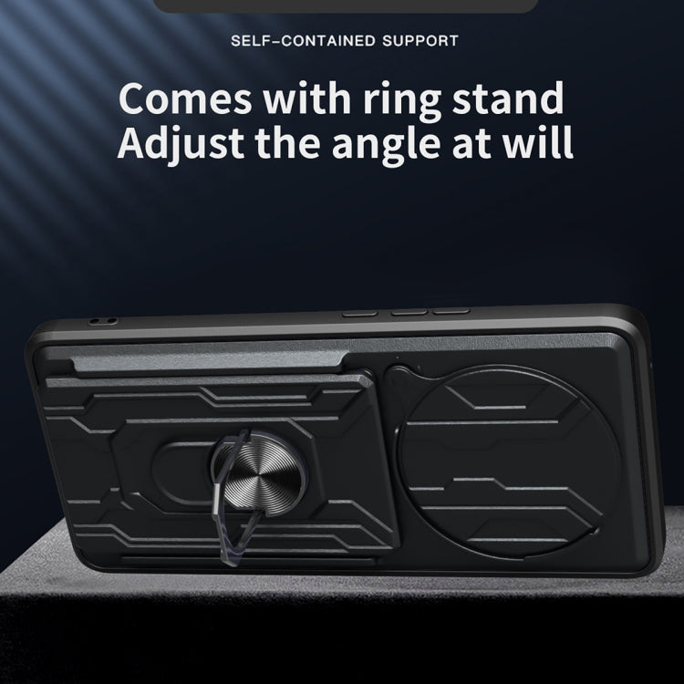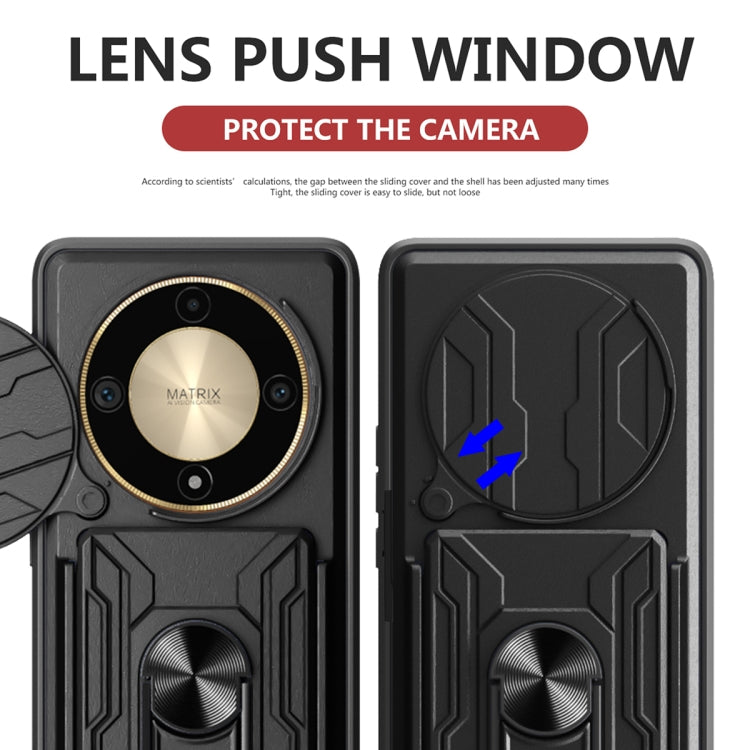 For Honor X9b Sliding Camshield TPU+PC Phone Case with Card Slot(Black)