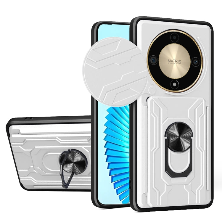 For Honor X9b Sliding Camshield TPU+PC Phone Case with Card Slot(White)