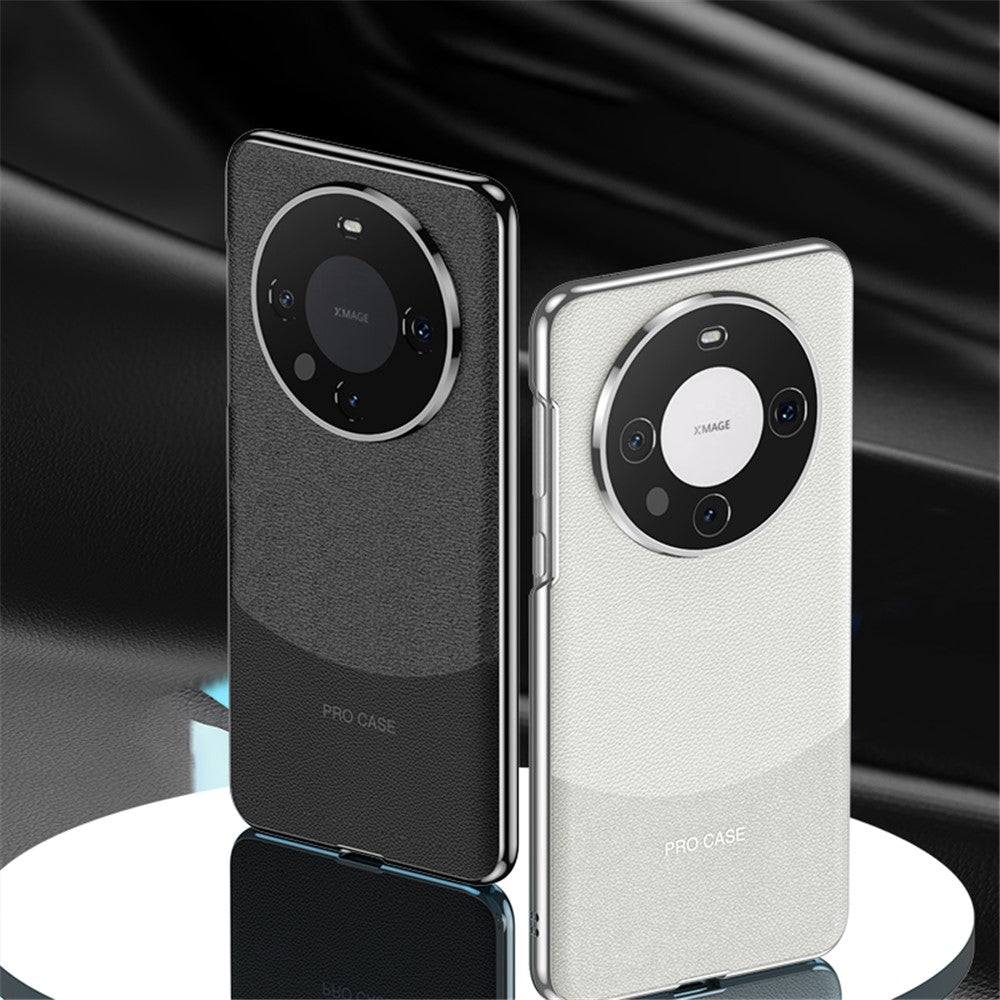 For Huawei Mate 60 Pro Case Electroplating PC+PU Leather Curved Phone Cover - White