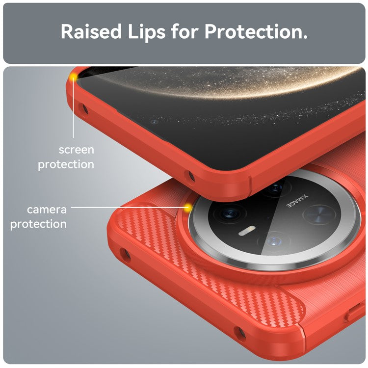 For Huawei Mate 70 Case Carbon Fiber Texture Brushed Phone Back Cover - Red