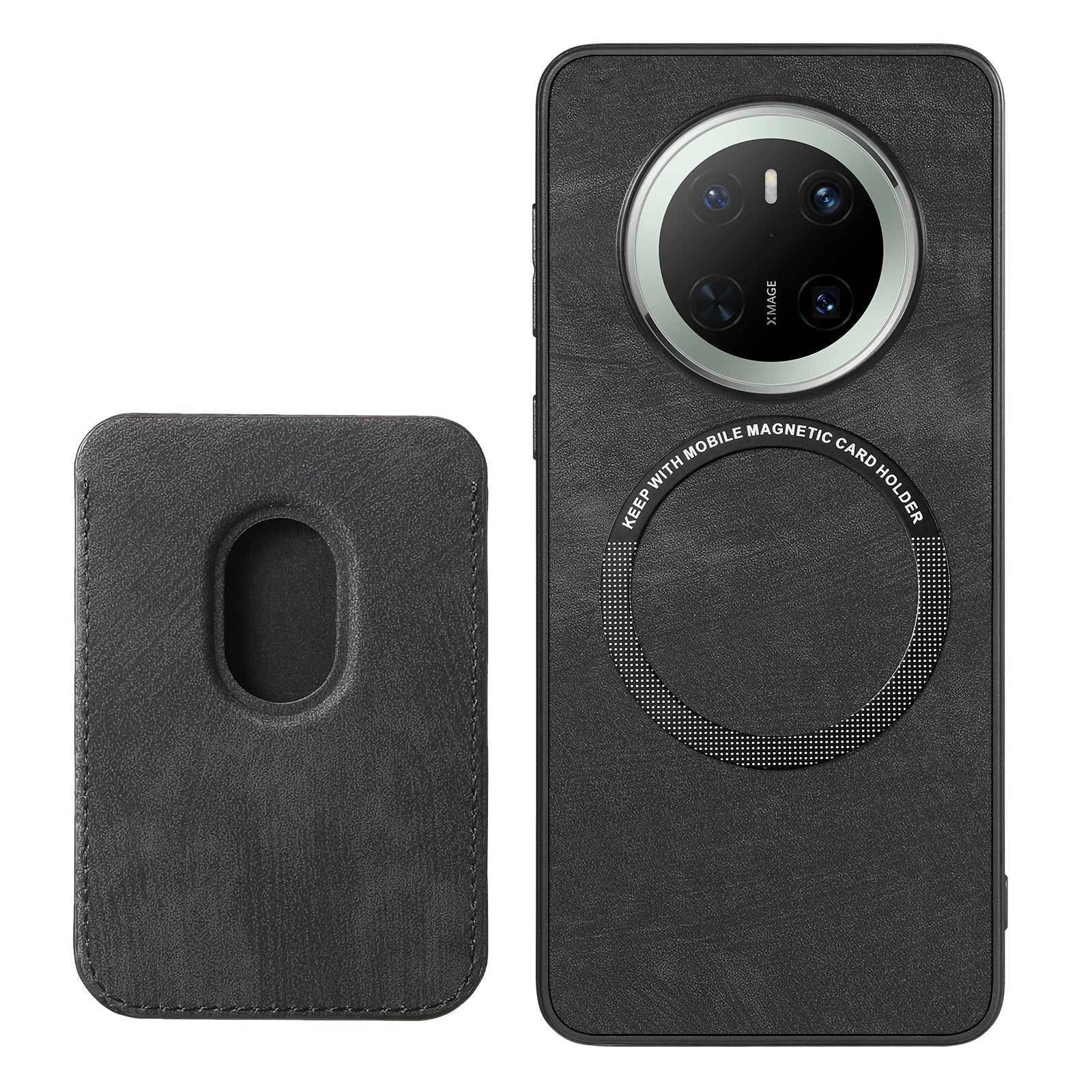 For Huawei Mate 70 Case Retro Leather TPU Phone Back Cover with Detachable Card Slot - Black