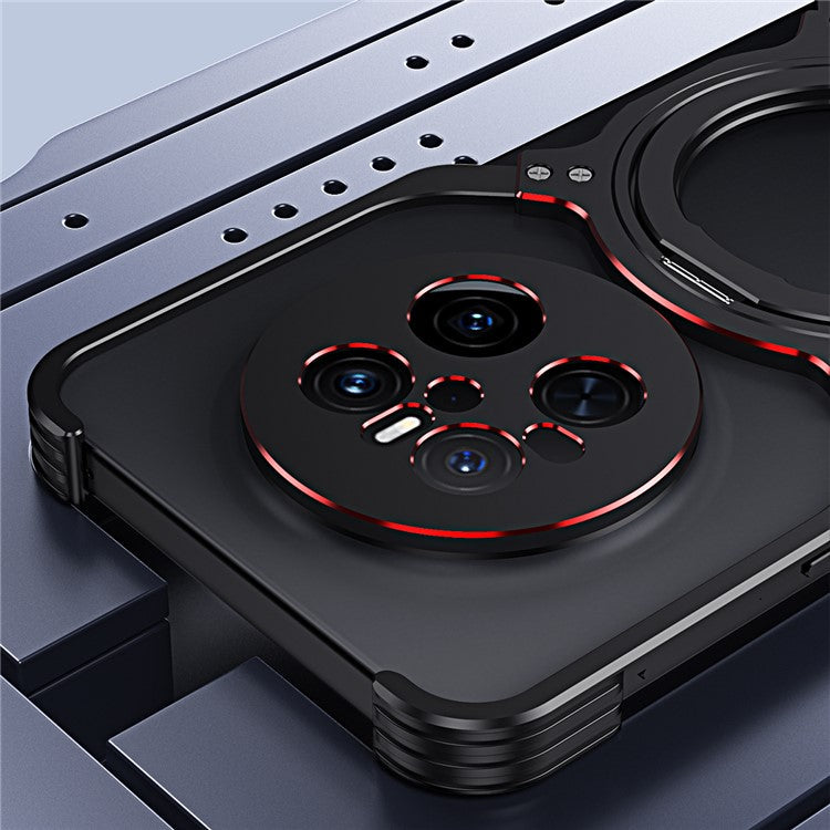 For Huawei Mate 70 Kickstand Case Metal Bumper Magnetic Phone Cover - Silver / Silver