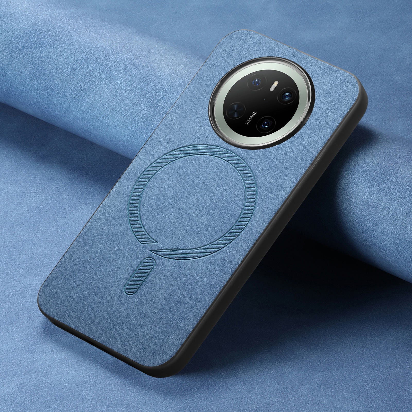 For Huawei Mate 70 Leather Back Case Compatible with MagSafe Skin-touch Phone Cover - Blue