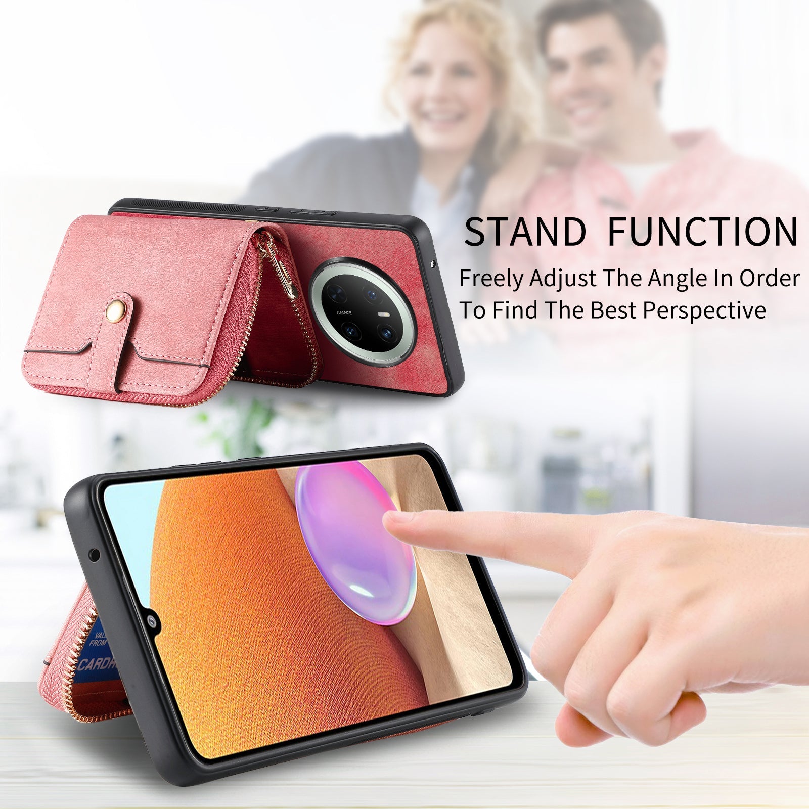 For Huawei Mate 70 PU Leather Phone Back Cover with Zipper Card Holder and Long Strap - Pink