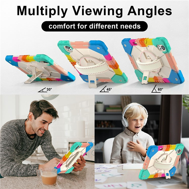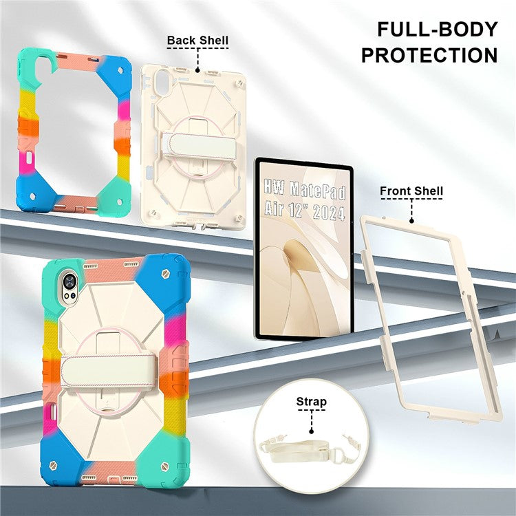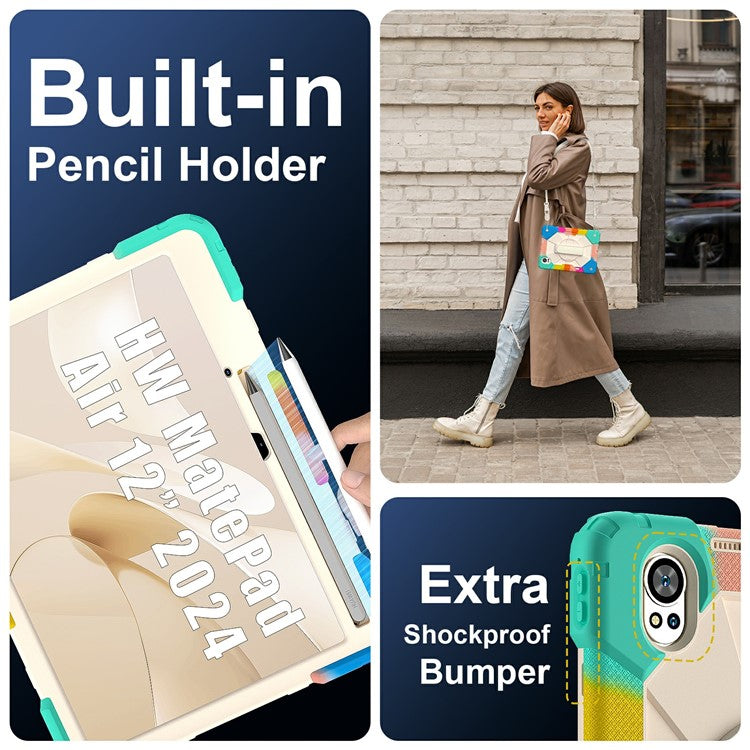 For Huawei MatePad Air (2024) Case Kickstand Silicone+PC Tablet Cover with Shoulder Strap - Colorful / Blue